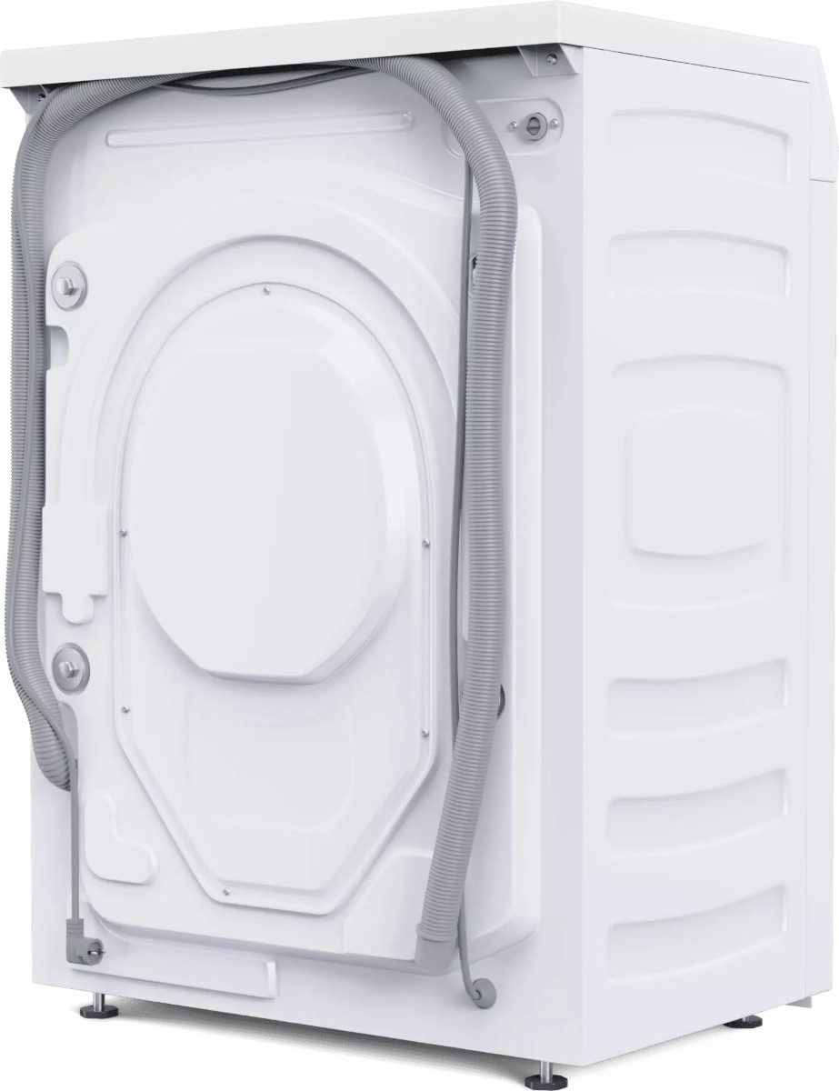 Современный лаконичный корпус в белом цвете с контрастной черной дверцей впишется в интерьер ванной или кухни. Габариты 85×59.5×46 см делают прибор компактным и удобным для установки в нише. Боковые стенки с технологией AntiVibration снижают вибрацию и повышают устойчивость, что важно при высоких оборотах отжима.