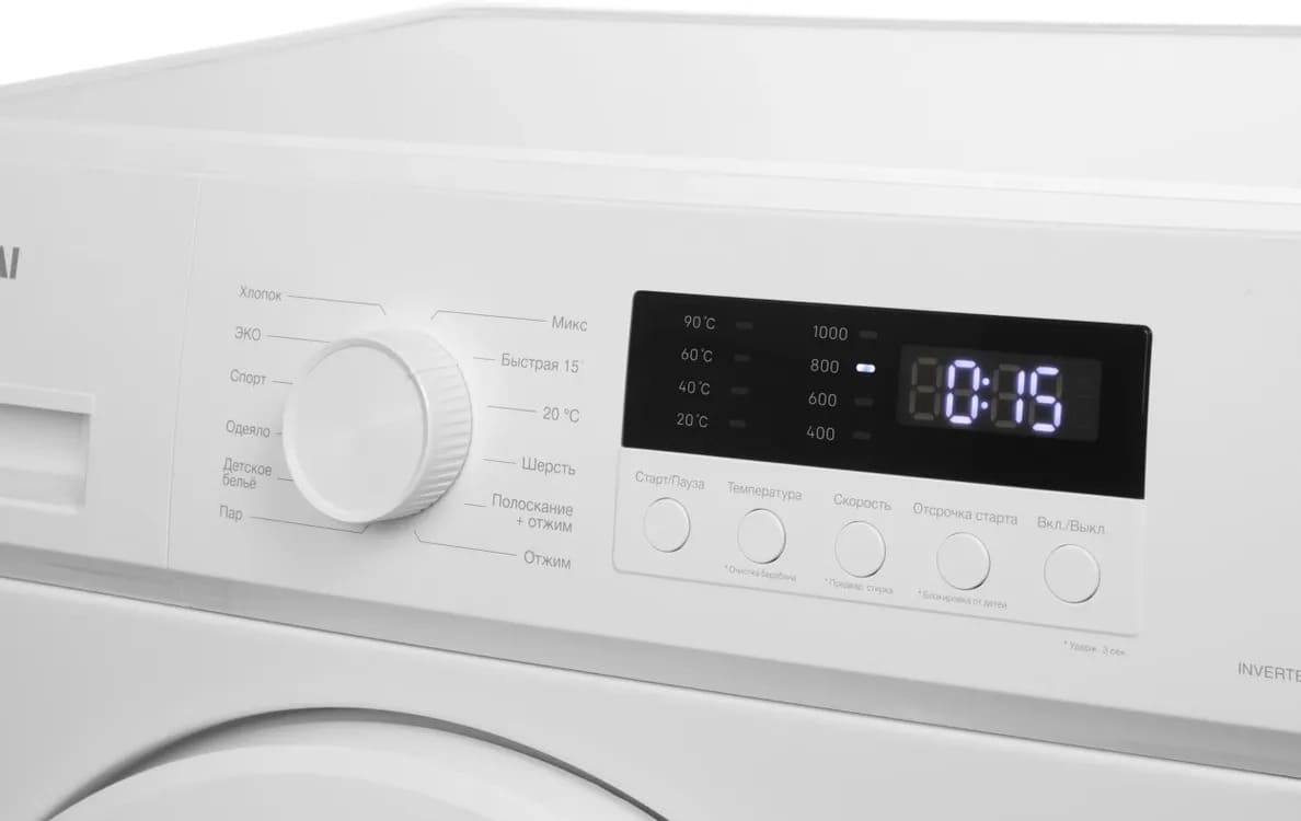 Вы загружаете белье, выбираете программу, задаете параметры и выставляете таймер для удобной работы.