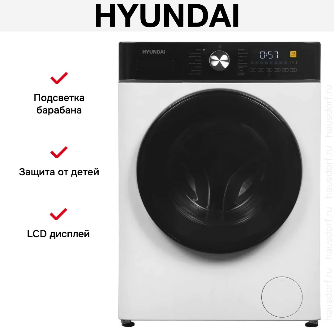 Стиральная машина Hyundai WME7216 — фронтальная отдельно стоящая модель для дома с аккуратными очертаниями белого корпуса и контрастным чёрным люком. Диаметр дверцы 48 см и проём 33 см, створка открывается на 150°, поэтому загружать постельное бельё и объёмные пуховики удобно. Прямая панель управления с цифровым дисплеем, сенсорными клавишами и поворотным селектором делает выбор настроек быстрым, а подсветка из нержавеющего барабана помогает ничего не забыть. При скромной глубине 46,5 см техника органично встанет в узком пространстве, сохраняя привычную ширину 60 см и высоту 84,7 см.