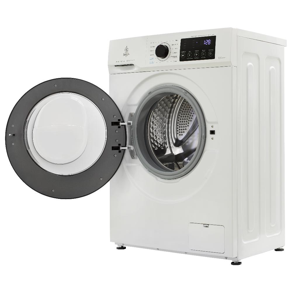 Цвет этой стиральной машинки — белый. Мотор: Инверторный. Благодаря ему машина работает тише, потребляет меньше электроэнергии, сохраняя при этом необходимую мощность.