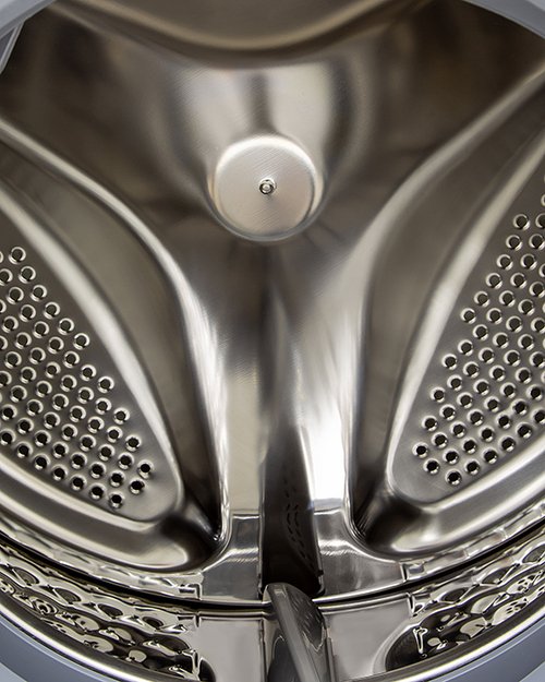 Барабан большого размера имеет целый ряд других преимуществ. Большие машины обычно оснащаются более мощным двигателем, способным развивать высокую скорость вращения. Следовательно, будет увеличиваться и центробежная сила, белье будет интенсивнее соприкасаться со стенками барабана, что ведет к улучшению качества стирки.