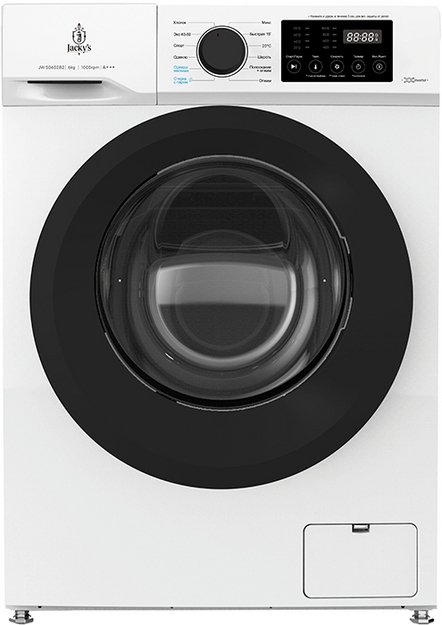 Стиральная машина Джекис JW S0602B2 выпущена в стандартной конфигурации — устанавливается отдельно, поэтому рекомендуем заранее выделить для нее место в квартире. Благодаря классической фронтальной загрузке она привычна и удобна даже для тех, кто не очень разбирается в технике. За счет небольшой глубины данную модель предпочитают владельцы небольших квартир, студий. В барабан помещается не так много вещей за один раз, но тем, кто не любит копить вещи или просто мало стирает, будет достаточно. Максимальная загрузка: 6 кг.