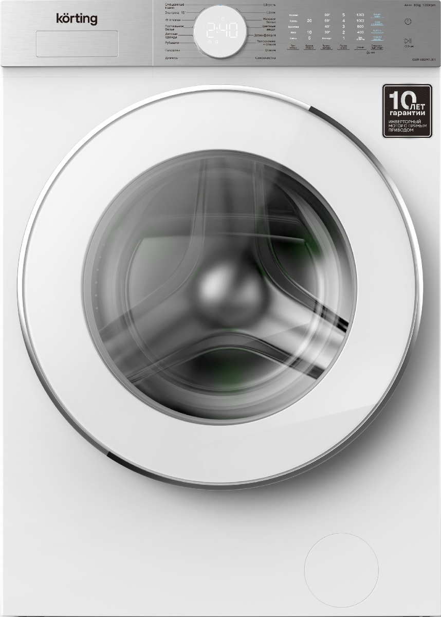 Стиральная машина Кертинг KWM 60DM1201 выпущена в стандартной конфигурации — устанавливается отдельно, поэтому рекомендуем заранее выделить для нее место в квартире. Благодаря классической фронтальной загрузке она привычна и удобна даже для тех, кто не очень разбирается в технике. В барабан помещается большое количество белья, что подойдет большим семьям или тем, кто часто стирает объемные вещи — постельное белье, верхнюю одежду. Максимальная загрузка: 10 кг.