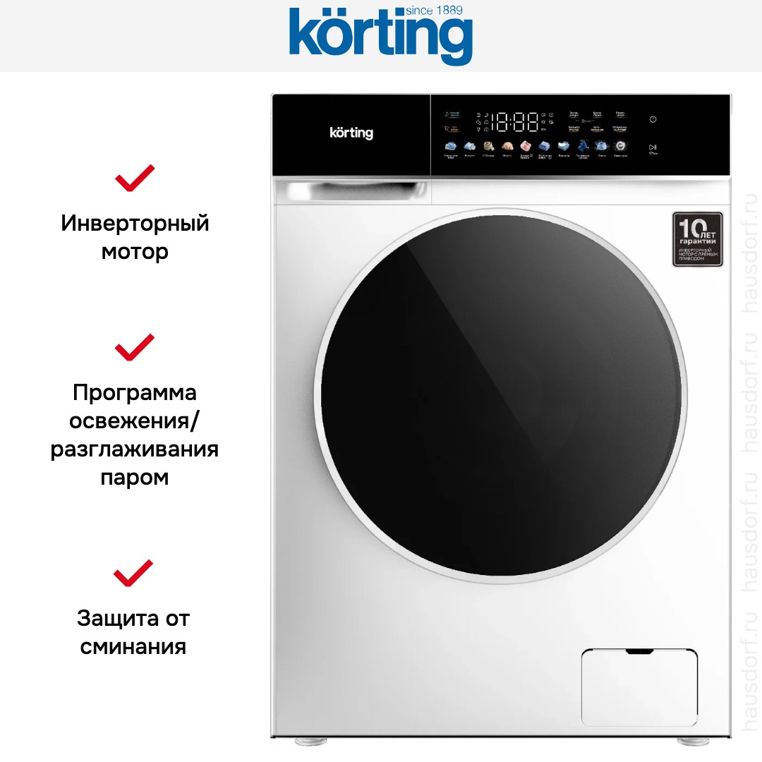 Функционал ориентирован на повседневный комфорт и гибкость ухода за вещами. Десять программ покрывают основные потребности: хлопок, смешанное бельё, деликатные вещи и шерсть, а также специальные режимы для постельного белья, пуховиков и детской одежды. Для быстрого обновления гардероба есть супербыстрая стирка за 15 минут, а функция удаления пятен и защита от сминания облегчают уход за вещами даже в сложных случаях. Паровая программа разглаживания и освежения снижает необходимость глажки, а режим гигиены поддерживает чистоту внутри прибора.