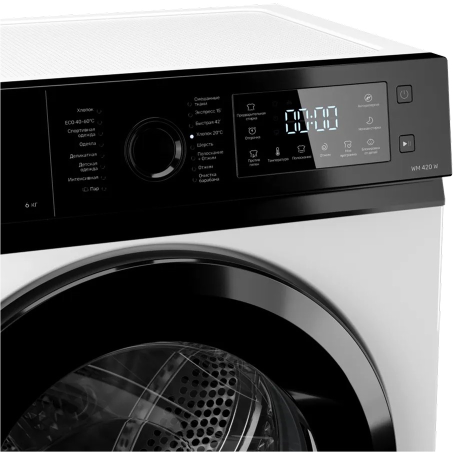 Стиральная машина Куперсберг WM 420 W выпущена в стандартной конфигурации — устанавливается отдельно, поэтому рекомендуем заранее выделить для нее место в квартире. Благодаря классической фронтальной загрузке она привычна и удобна даже для тех, кто не очень разбирается в технике. За счет небольшой глубины данную модель предпочитают владельцы небольших квартир, студий. В барабан помещается не так много вещей за один раз, но тем, кто не любит копить вещи или просто мало стирает, будет достаточно. Максимальная загрузка: 6 кг.