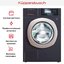 Стиральная машина черного цвета — находка для тех, кто выбирает интерьер ванной комнаты в темных оттенках или с большим использованием дерева. Модель Kuppersbusch — одна из немногих, выполненных в таком дизайне.