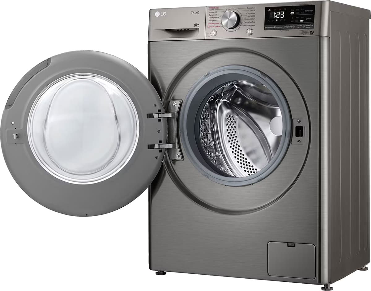 Цвет этой стиральной машинки — серебристый. Мотор: Инверторный. Благодаря ему машина работает тише, потребляет меньше электроэнергии, сохраняя при этом необходимую мощность.