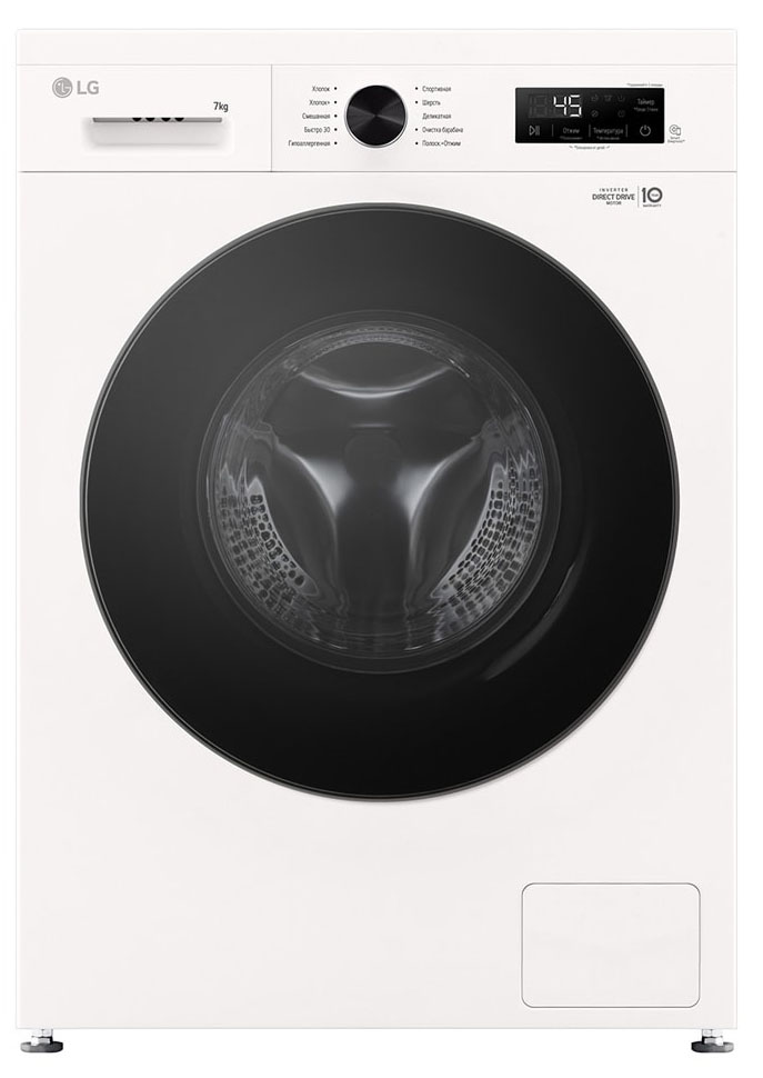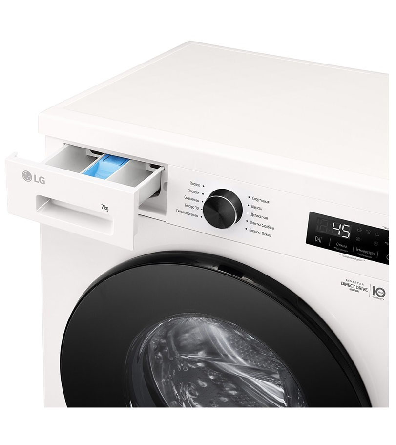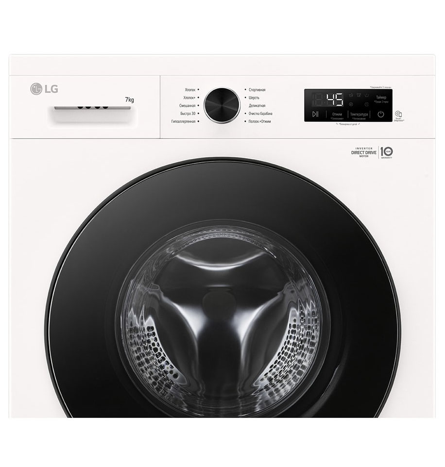 Цвет этой стиральной машинки — белый. Мотор: Инверторный. Благодаря ему машина работает тише, потребляет меньше электроэнергии, сохраняя при этом необходимую мощность.