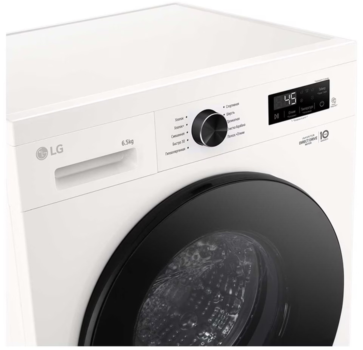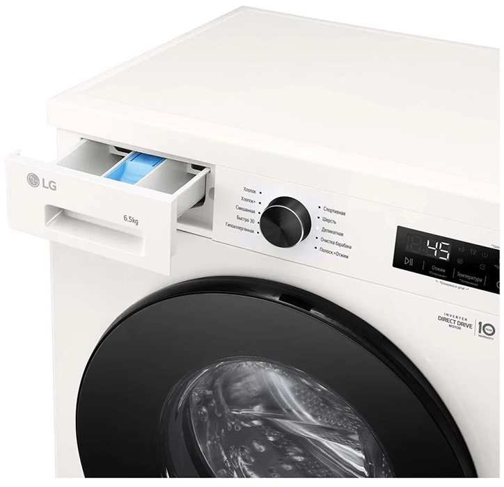 Цвет этой стиральной машинки — белый. Мотор: Инверторный. Благодаря ему машина работает тише, потребляет меньше электроэнергии, сохраняя при этом необходимую мощность.