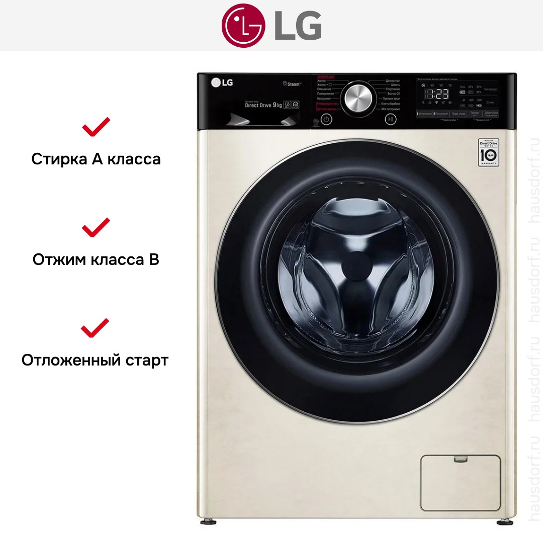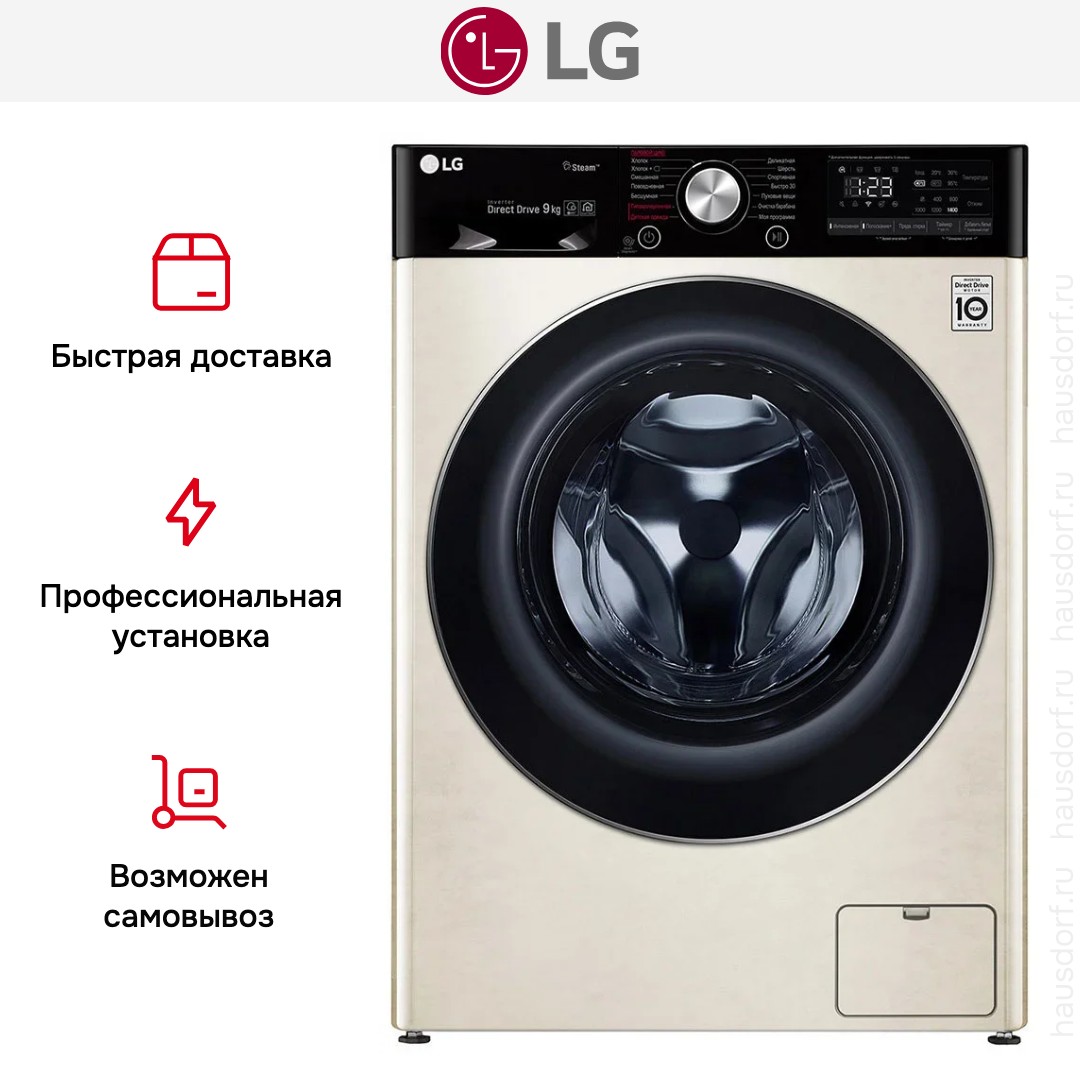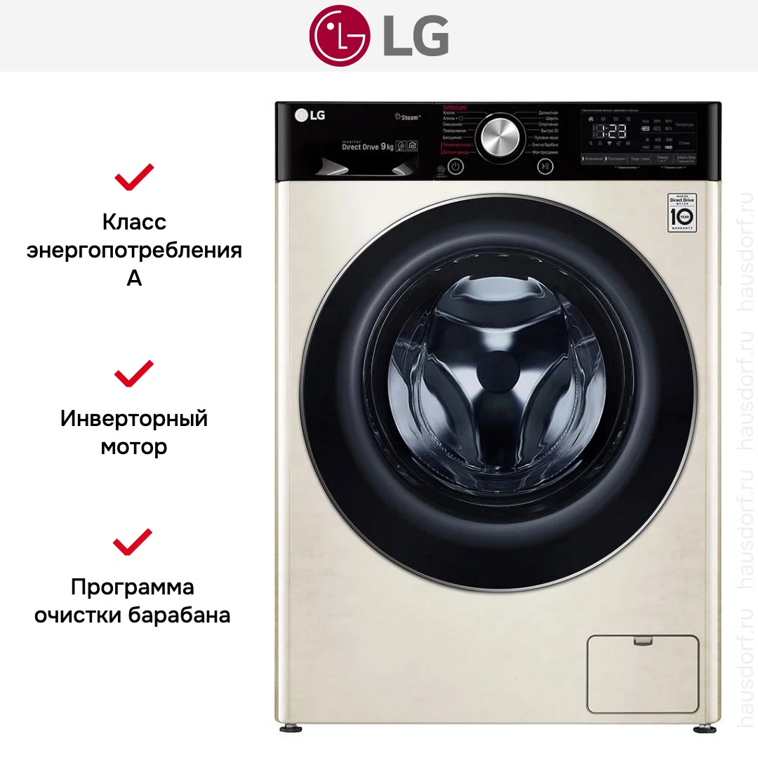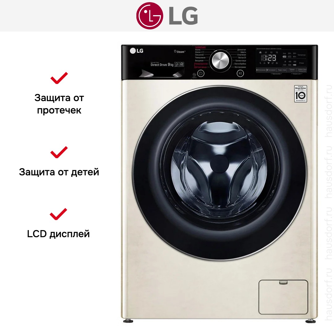 Стиральная машина LG F4V5VS9B стала для меня удачным сочетанием практичного дизайна и продуманного набора функций. Я заметил элегантный бежевый корпус и контрастную черную дверцу, которые легко вписываются в интерьер кухни или прачечной. Наклонная панель управления с LED-дисплеем делает считывание информации удобным даже при низком росте, а сочетание сенсорных кнопок и поворотного программатора оставляет выбор между быстрым касанием и привычным вращением.