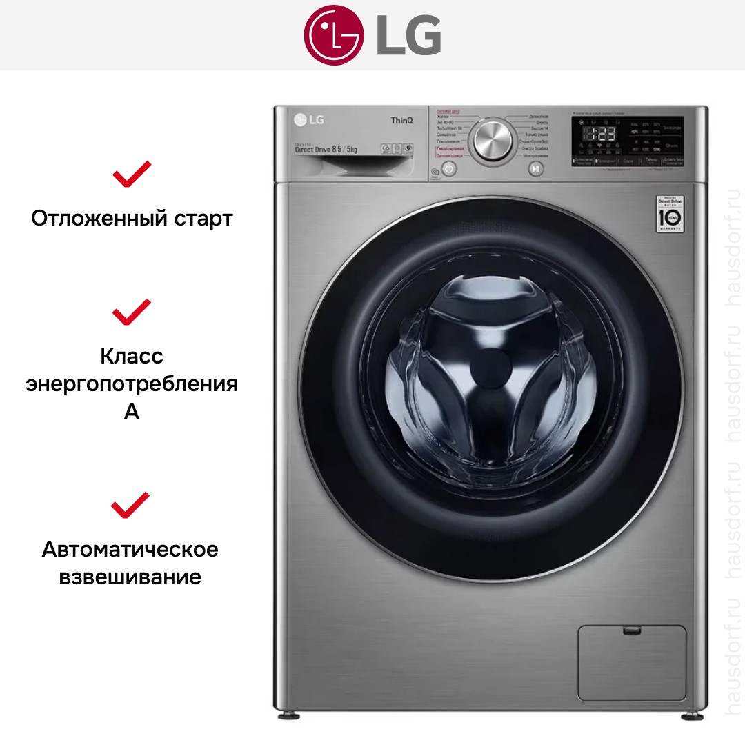 Стиральная машина Лджи F2V5GG2S выпущена в стандартной конфигурации — устанавливается отдельно, поэтому рекомендуем заранее выделить для нее место в квартире. Благодаря классической фронтальной загрузке она привычна и удобна даже для тех, кто не очень разбирается в технике. За счет небольшой глубины данную модель предпочитают владельцы небольших квартир, студий. Максимальная загрузка: 8.5 кг.