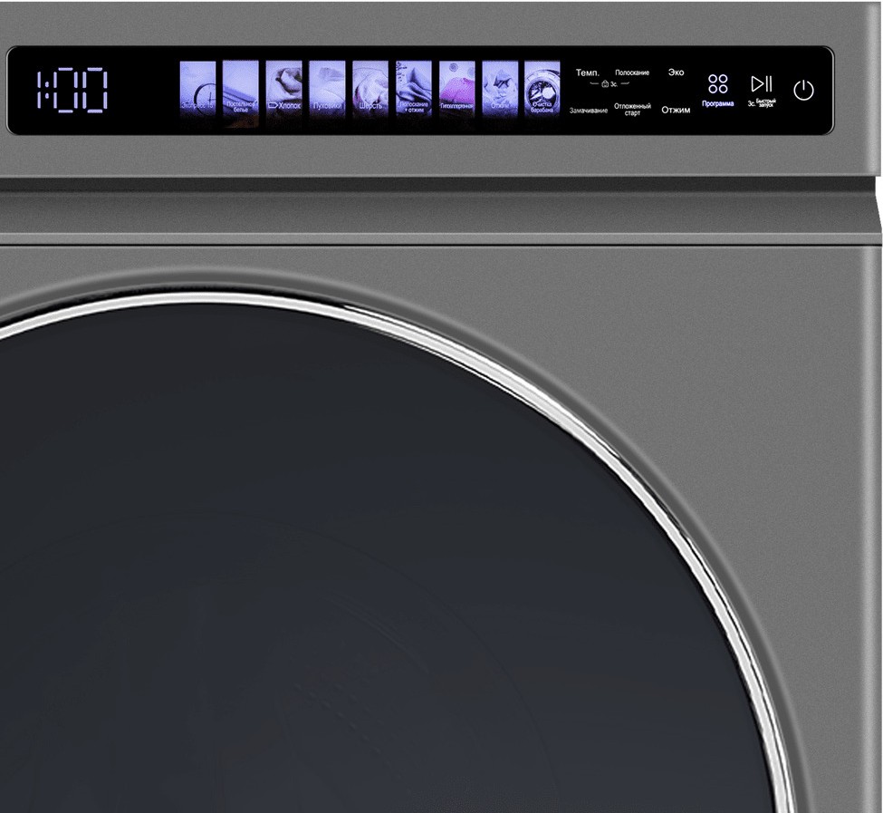 Вы загружаете белье, выбираете программу, задаете параметры и выставляете таймер для удобной работы.