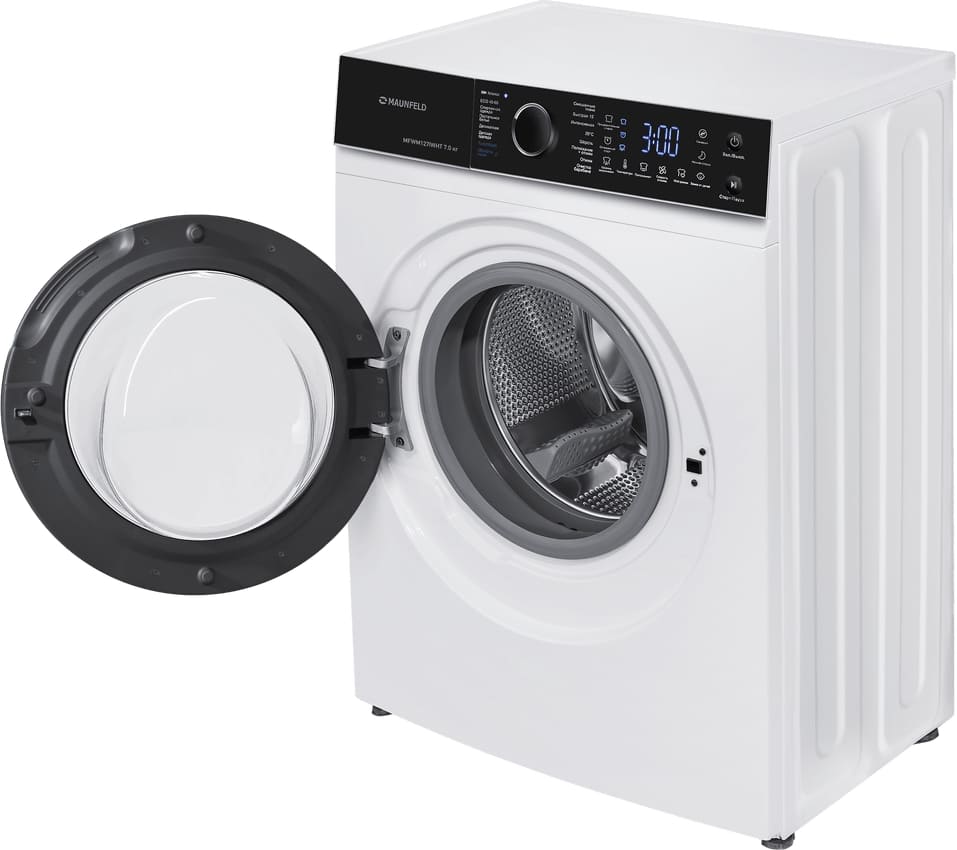 Стиральная машина Маунфилд MFWM127IWHT выпущена в стандартной конфигурации — устанавливается отдельно, поэтому рекомендуем заранее выделить для нее место в квартире. Благодаря классической фронтальной загрузке она привычна и удобна даже для тех, кто не очень разбирается в технике. За счет небольшой глубины данную модель предпочитают владельцы небольших квартир, студий. Вместительность барабана средняя, поэтому ее хватит и для одиночек, и для семей с детьми. Максимальная загрузка: 7 кг.