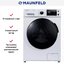 Maunfeld MFWM149WH — полноразмерная отдельно стоящая стиральная машина с фронтальной загрузкой высотой 85 см и шириной 60 см. Максимальный вес загруженного белья составляет 9 кг, так что эта модель подойдет для большой семьи. Машина оснащена инверторным двигателем, мощным и тихим: она относится к классу энергопотребления А+++ с минимальным расходом электроэнергии, а уровень шума при стирке составляет всего 57 дБ.