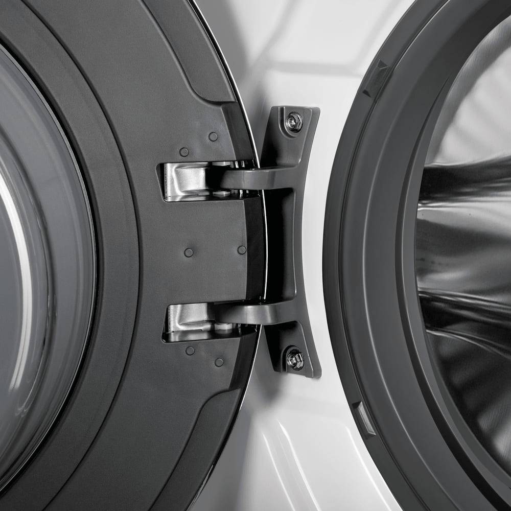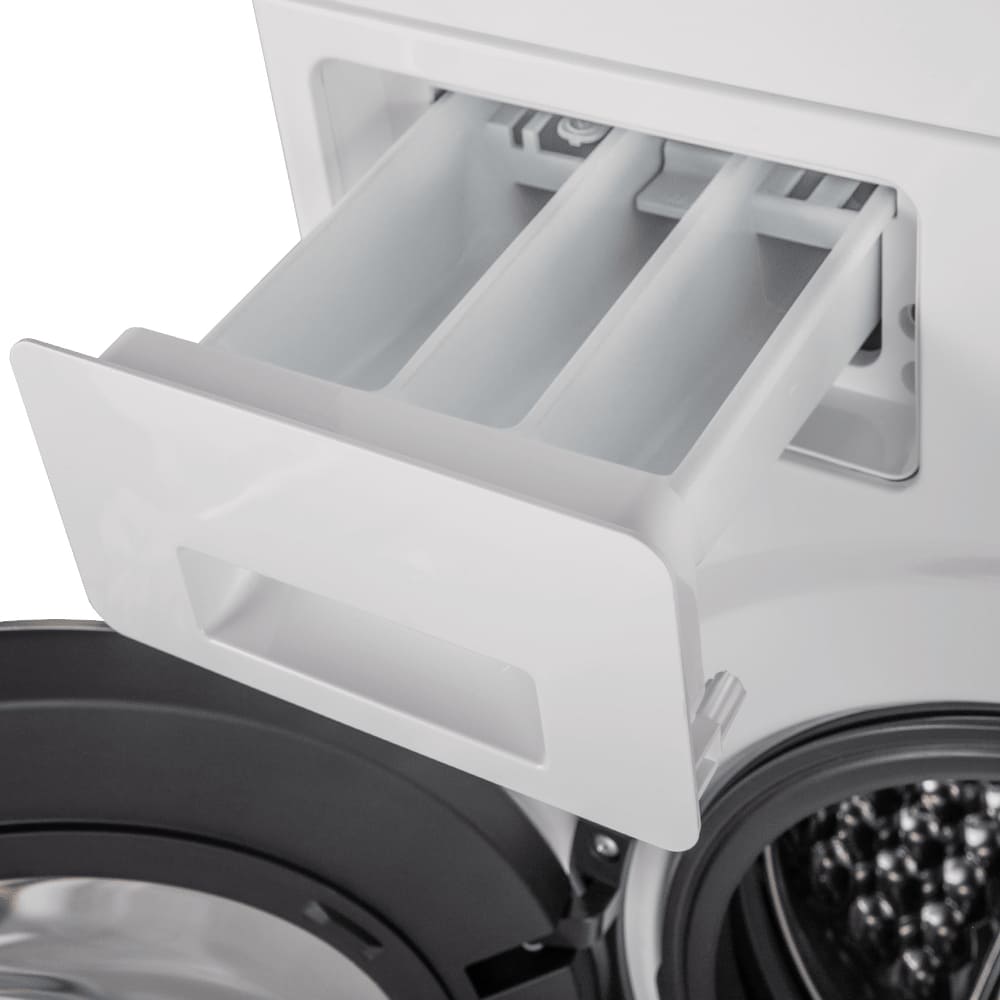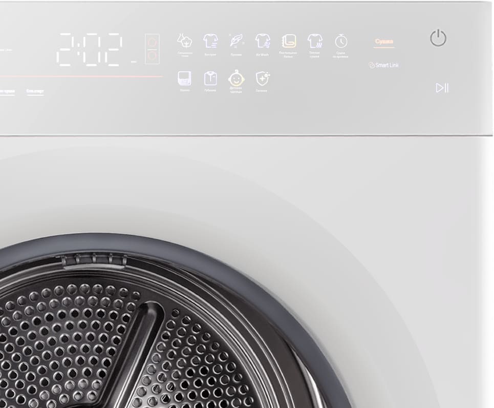 Эта модель — комбинация стирки и сушки, что полезно людям, которые не могут или не хотят приобретать отдельно сушильную машину, при этом в квартире нет балкона или лоджии, чтобы с комфортом сушить одежду на веревках. Вы можете отложить запуск, если хотите сэкономить на тарифах и включить машинку ночью, либо если планируете развесить белье сразу после возвращения работы и не ждать, пока закончится цикл. На панели управления отображаются разнообразные индикаторы, чтобы было проще следить за процессом, например: необходимости провести очистку прибора, времени до окончания стирки, выбора дополнительных функций, блокировки дверцы, блокировки от детей, сушки, включения и выключения, старт/пауза, отсрочки старта. Скорость отжима достигает 1200 оборотов в минуту.