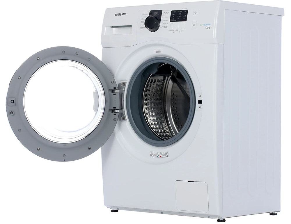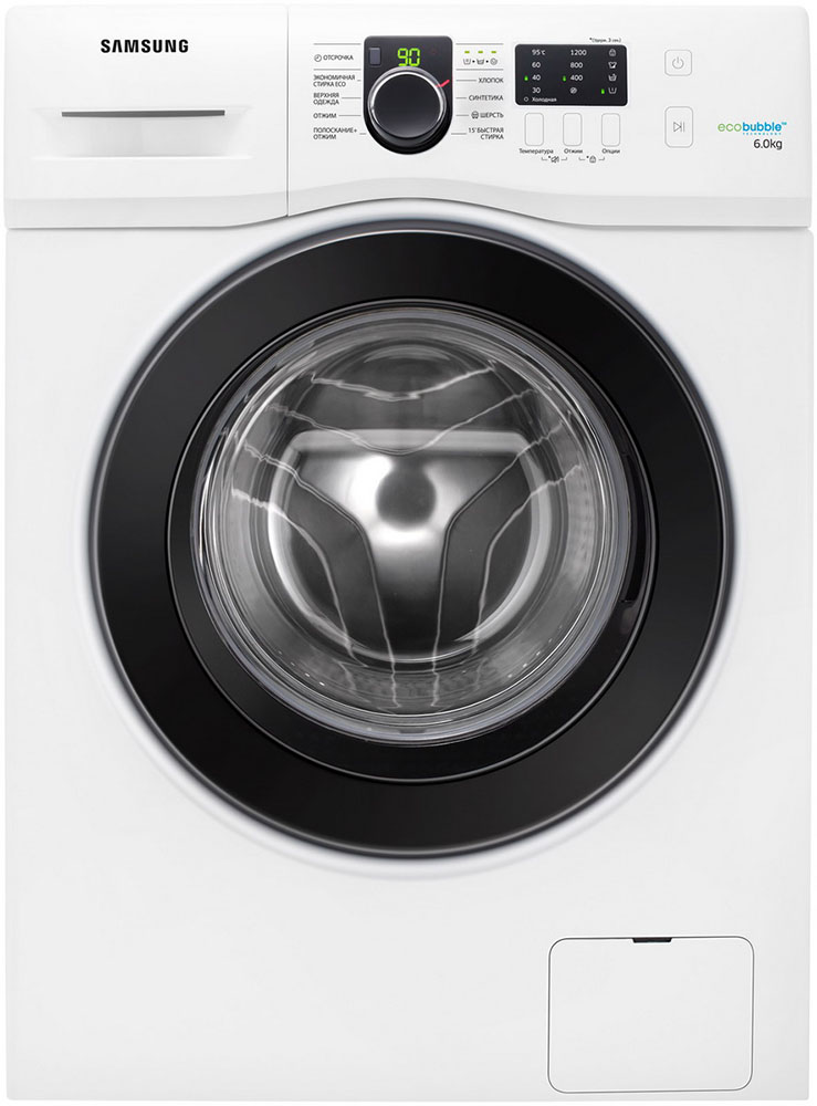 Стиральная машина Самсунг WF 60 F1R2E2W/DLP выпущена в стандартной конфигурации — устанавливается отдельно, поэтому рекомендуем заранее выделить для нее место в квартире. Благодаря классической фронтальной загрузке она привычна и удобна даже для тех, кто не очень разбирается в технике. За счет небольшой глубины данную модель предпочитают владельцы небольших квартир, студий. В барабан помещается не так много вещей за один раз, но тем, кто не любит копить вещи или просто мало стирает, будет достаточно. Максимальная загрузка: 6 кг.