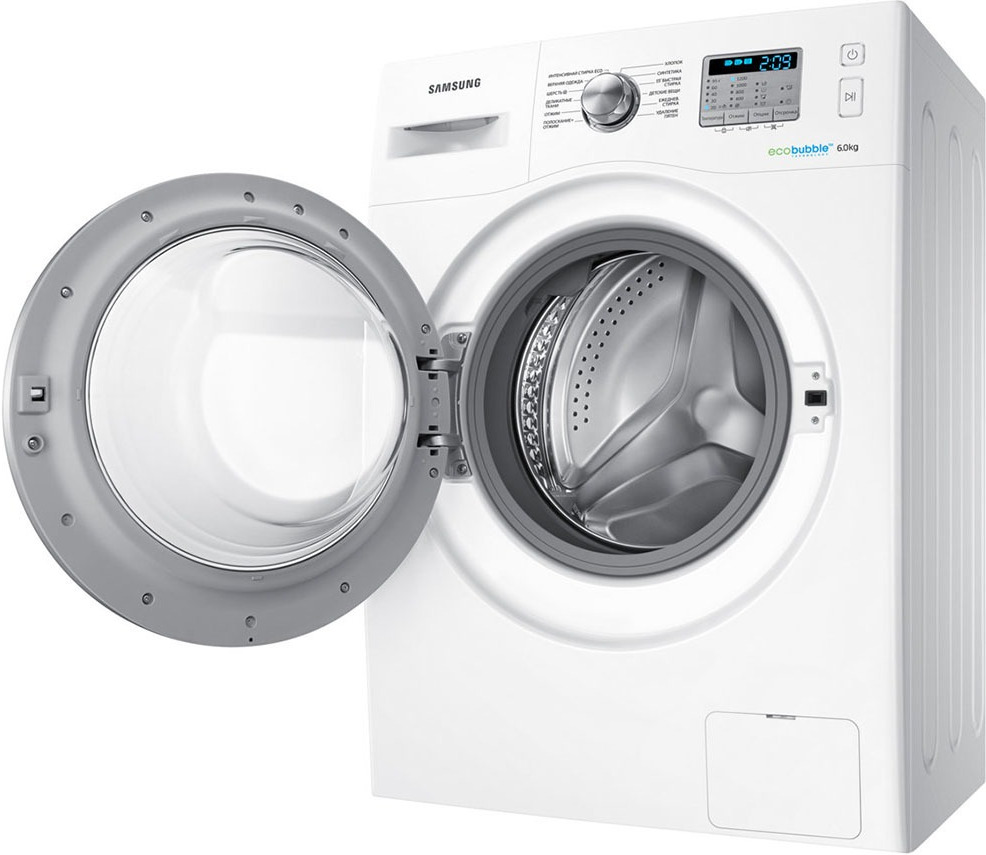 Стиральная машина Самсунг WW 60H2230EW выпущена в стандартной конфигурации — устанавливается отдельно, поэтому рекомендуем заранее выделить для нее место в квартире. Благодаря классической фронтальной загрузке она привычна и удобна даже для тех, кто не очень разбирается в технике. За счет небольшой глубины данную модель предпочитают владельцы небольших квартир, студий. В барабан помещается не так много вещей за один раз, но тем, кто не любит копить вещи или просто мало стирает, будет достаточно. Максимальная загрузка: 6 кг.