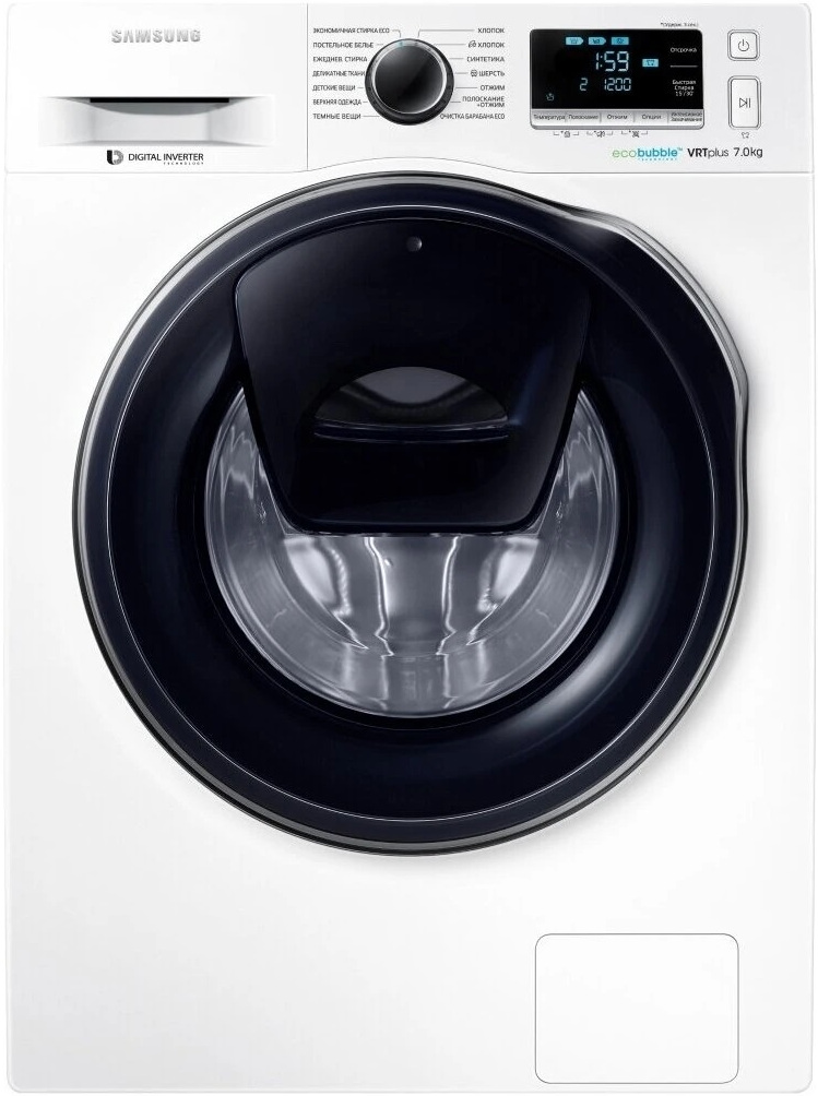 Стиральная машина Самсунг WW 70K6210 RW AddWash выпущена в стандартной конфигурации — устанавливается отдельно, поэтому рекомендуем заранее выделить для нее место в квартире. Благодаря классической фронтальной загрузке она привычна и удобна даже для тех, кто не очень разбирается в технике. За счет небольшой глубины данную модель предпочитают владельцы небольших квартир, студий. Вместительность барабана средняя, поэтому ее хватит и для одиночек, и для семей с детьми. Максимальная загрузка: 7 кг.