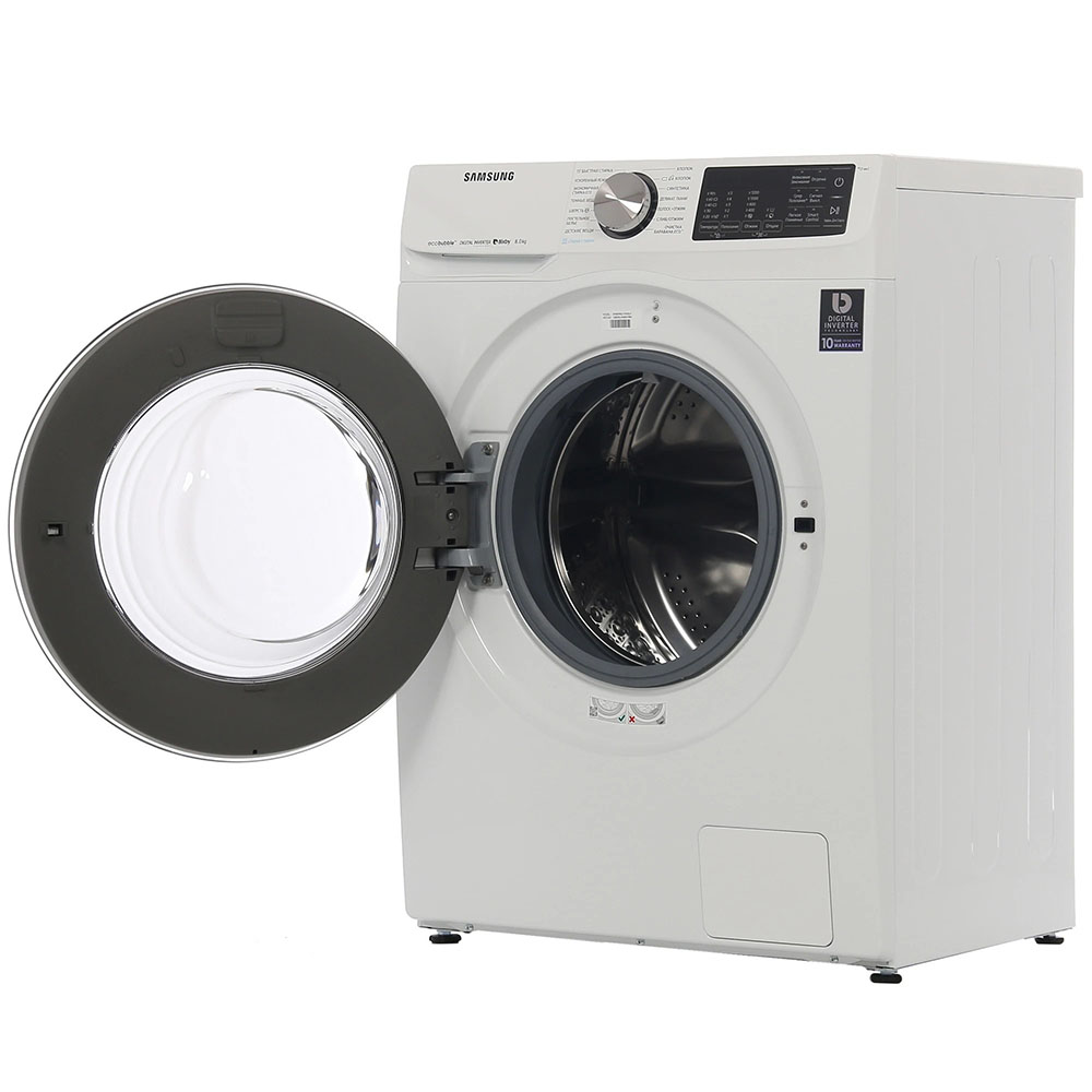 Цвет этой стиральной машинки — белый. Мотор: Инверторный. Благодаря ему машина работает тише, потребляет меньше электроэнергии, сохраняя при этом необходимую мощность.