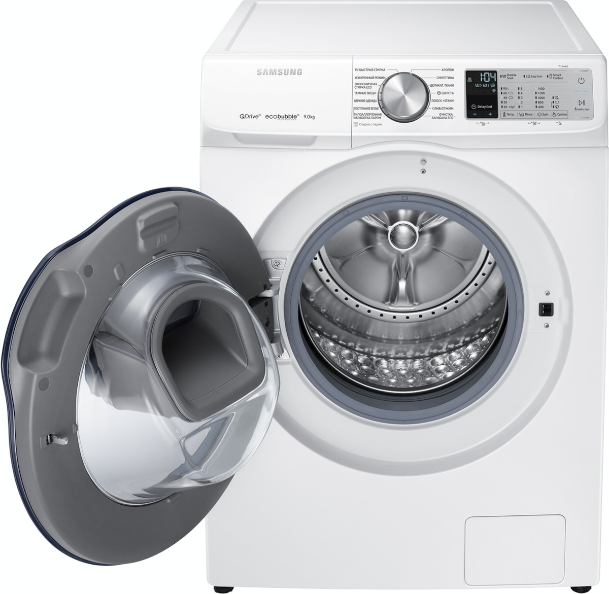 Стиральная машина Самсунг WW 90M64LOPA AddWash выпущена в стандартной конфигурации — устанавливается отдельно, поэтому рекомендуем заранее выделить для нее место в квартире. Благодаря классической фронтальной загрузке она привычна и удобна даже для тех, кто не очень разбирается в технике. Вместительность барабана средняя, поэтому ее хватит и для одиночек, и для семей с детьми. Максимальная загрузка: 9 кг.