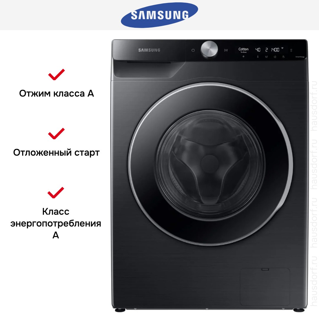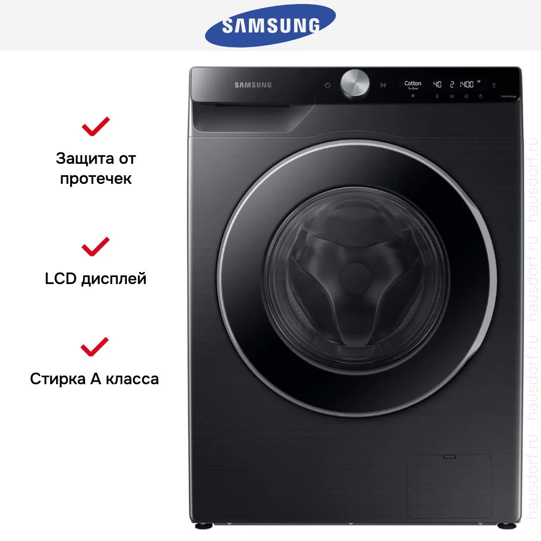 Стиральная машина Samsung WW11CG604CLBLP создана для тех, кто ценит современный внешний вид и продуманную функциональность в одном корпусе. Чёрный цвет и глянцевый люк придают устройству статусный и аккуратный облик, который легко впишется в интерьер кухни или прачечной. Корпус выполнен в компактных габаритах 85×60×60 см, что упрощает расстановку в ограниченном пространстве и позволяет сохранить свободное место рядом с бытовой техникой. Наклонная панель управления и LED-дисплей обеспечивают удобный обзор программ и параметров даже стоя чуть в стороне от машины.