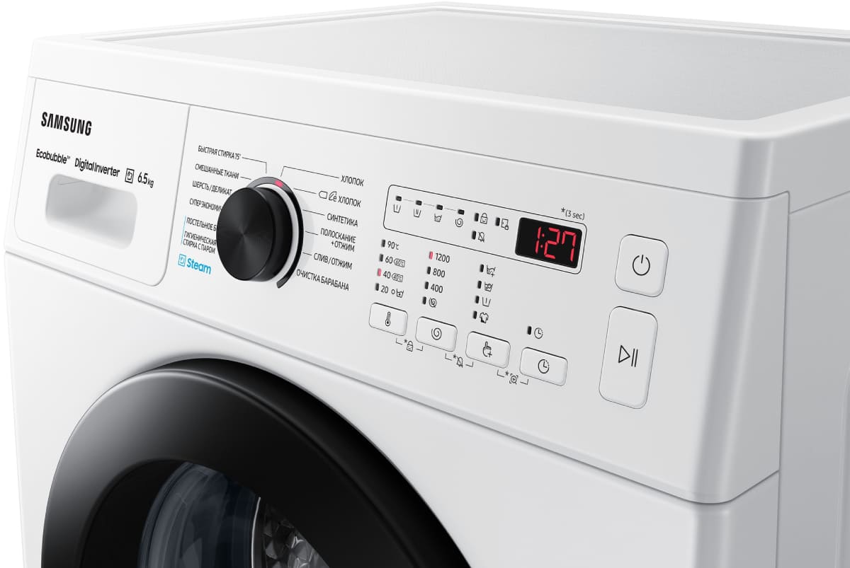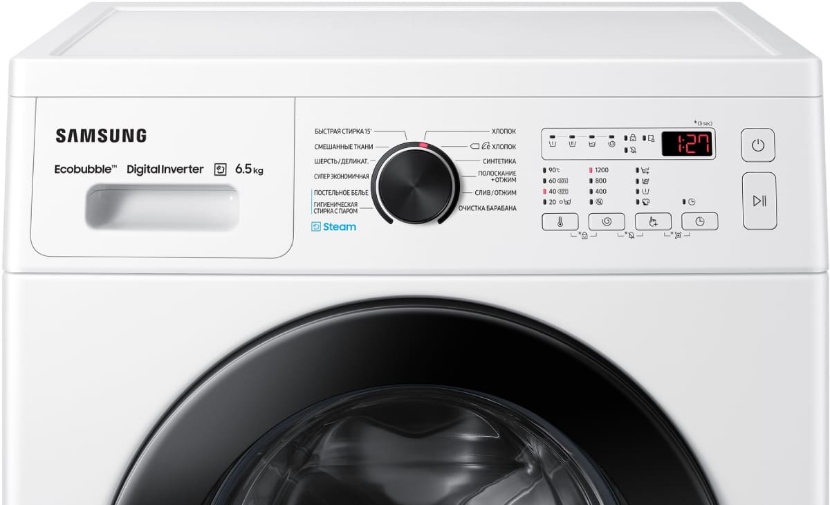 Электромеханическое управление удобно и понятно. Производитель внедрил интеллектуальную систему контроля, с помощью которой данная модель автоматически улучшает все рабочие процессы. В вашем распоряжении: функция ECO, Технология EcoBubble. Для выбора программ используются кнопки, поворотный программатор. Количество режимов для стирки разных типов белья: 12.