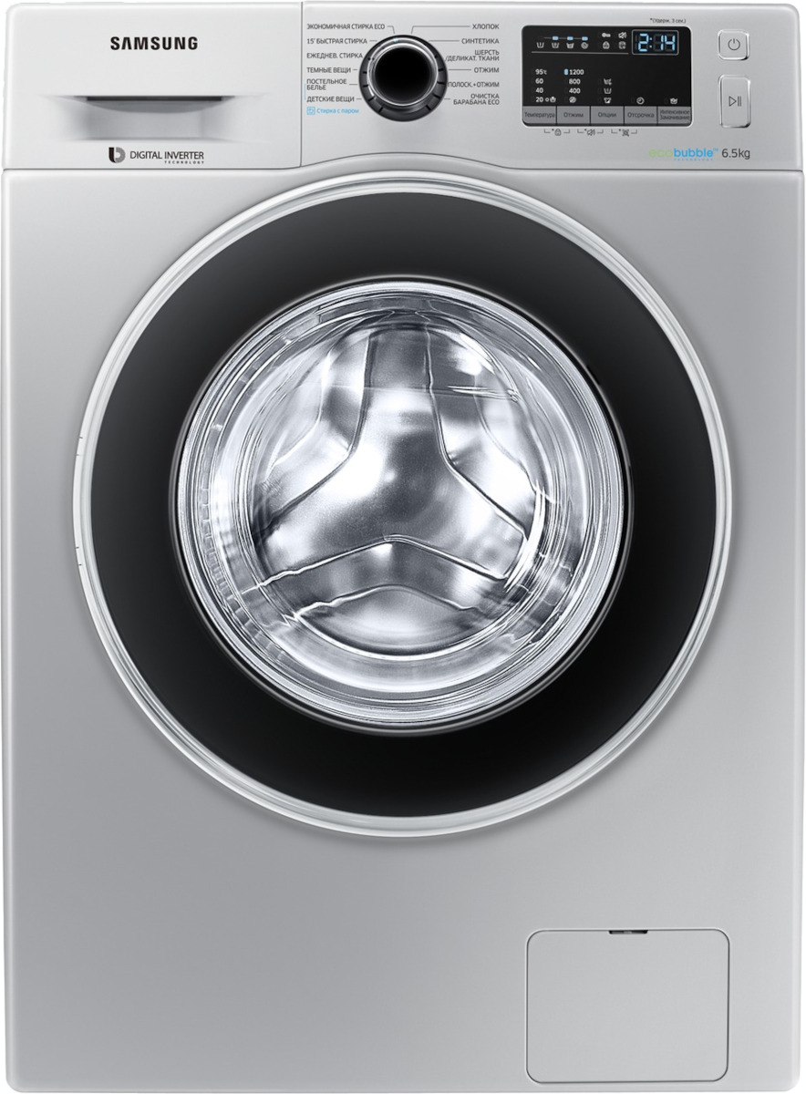 Цвет этой стиральной машинки — серебристый. В данной модели Samsung используется барабан Diamond. Мотор: Инверторный. Благодаря ему машина работает тише, потребляет меньше электроэнергии, сохраняя при этом необходимую мощность.