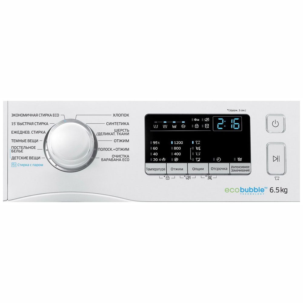 Электронное управление удобно и понятно. Производитель внедрил интеллектуальную систему контроля, с помощью которой данная модель автоматически улучшает все рабочие процессы. В вашем распоряжении: Технология EcoBubble. Для выбора программ используются кнопки, поворотный программатор. Количество режимов для стирки разных типов белья: 12.