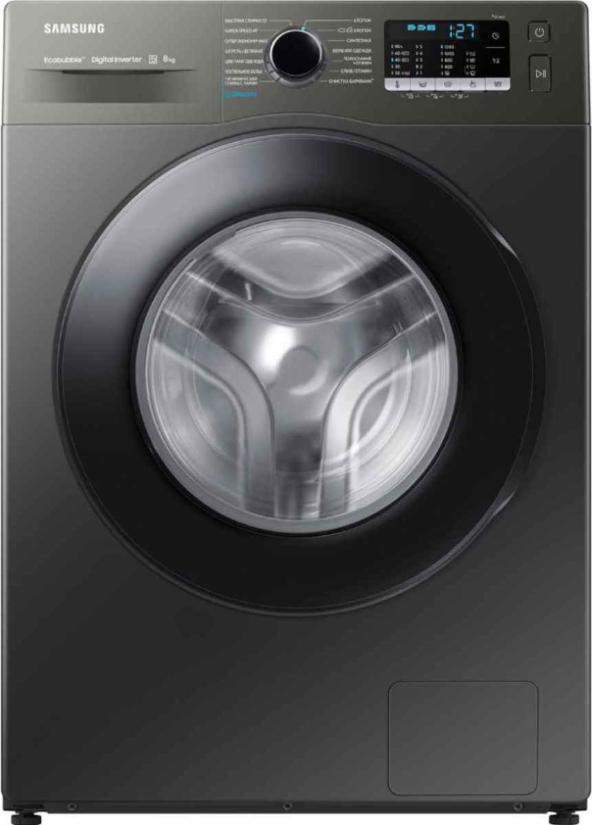 Цвет этой стиральной машинки — серый. В данной модели Samsung используется барабан Swirl. Мотор: Инверторный. Благодаря ему машина работает тише, потребляет меньше электроэнергии, сохраняя при этом необходимую мощность.