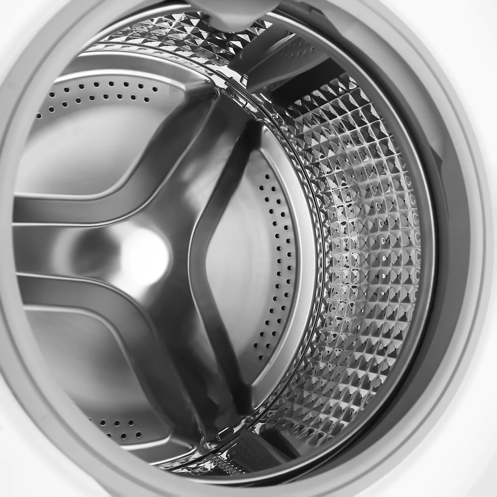 Цвет этой стиральной машинки — белый. Мотор: Инверторный. Благодаря ему машина работает тише, потребляет меньше электроэнергии, сохраняя при этом необходимую мощность.