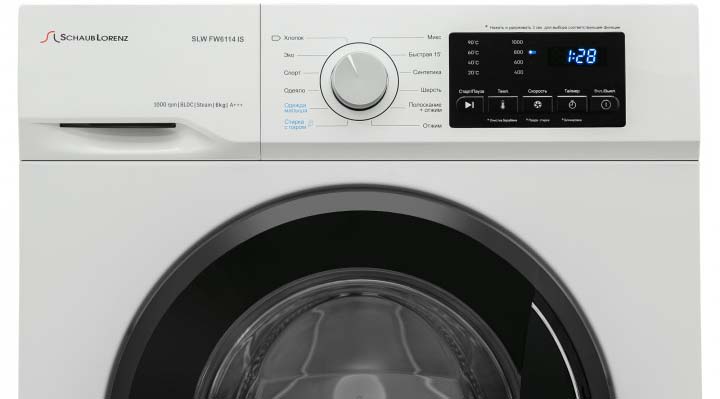 Вы загружаете белье, выбираете программу, задаете параметры и выставляете таймер для удобной работы.