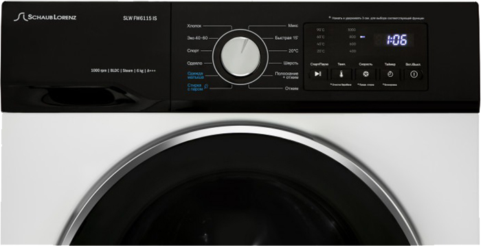 Стиральная машина Шауб Лоренц SLW FW6115 IS выпущена в стандартной конфигурации — устанавливается отдельно, поэтому рекомендуем заранее выделить для нее место в квартире. Благодаря классической фронтальной загрузке она привычна и удобна даже для тех, кто не очень разбирается в технике. За счет небольшой глубины данную модель предпочитают владельцы небольших квартир, студий. В барабан помещается не так много вещей за один раз, но тем, кто не любит копить вещи или просто мало стирает, будет достаточно. Максимальная загрузка: 6 кг.
