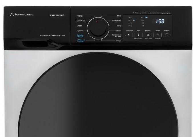 Стиральная машина Шауб Лоренц SLW FW6224 IS выпущена в стандартной конфигурации — устанавливается отдельно, поэтому рекомендуем заранее выделить для нее место в квартире. Благодаря классической фронтальной загрузке она привычна и удобна даже для тех, кто не очень разбирается в технике. За счет небольшой глубины данную модель предпочитают владельцы небольших квартир, студий. В барабан помещается не так много вещей за один раз, но тем, кто не любит копить вещи или просто мало стирает, будет достаточно. Максимальная загрузка: 6 кг.