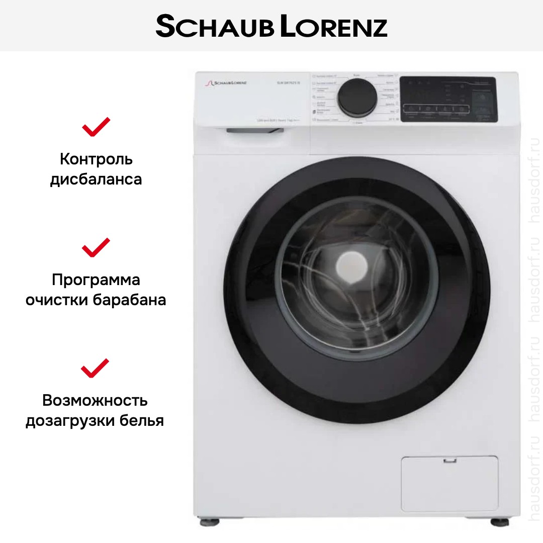 Стиральная машина Шауб Лоренц SLW SW7625 IS выпущена в стандартной конфигурации — устанавливается отдельно, поэтому рекомендуем заранее выделить для нее место в квартире. Благодаря классической фронтальной загрузке она привычна и удобна даже для тех, кто не очень разбирается в технике. За счет небольшой глубины данную модель предпочитают владельцы небольших квартир, студий. Вместительность барабана средняя, поэтому ее хватит и для одиночек, и для семей с детьми. Максимальная загрузка: 7 кг.
