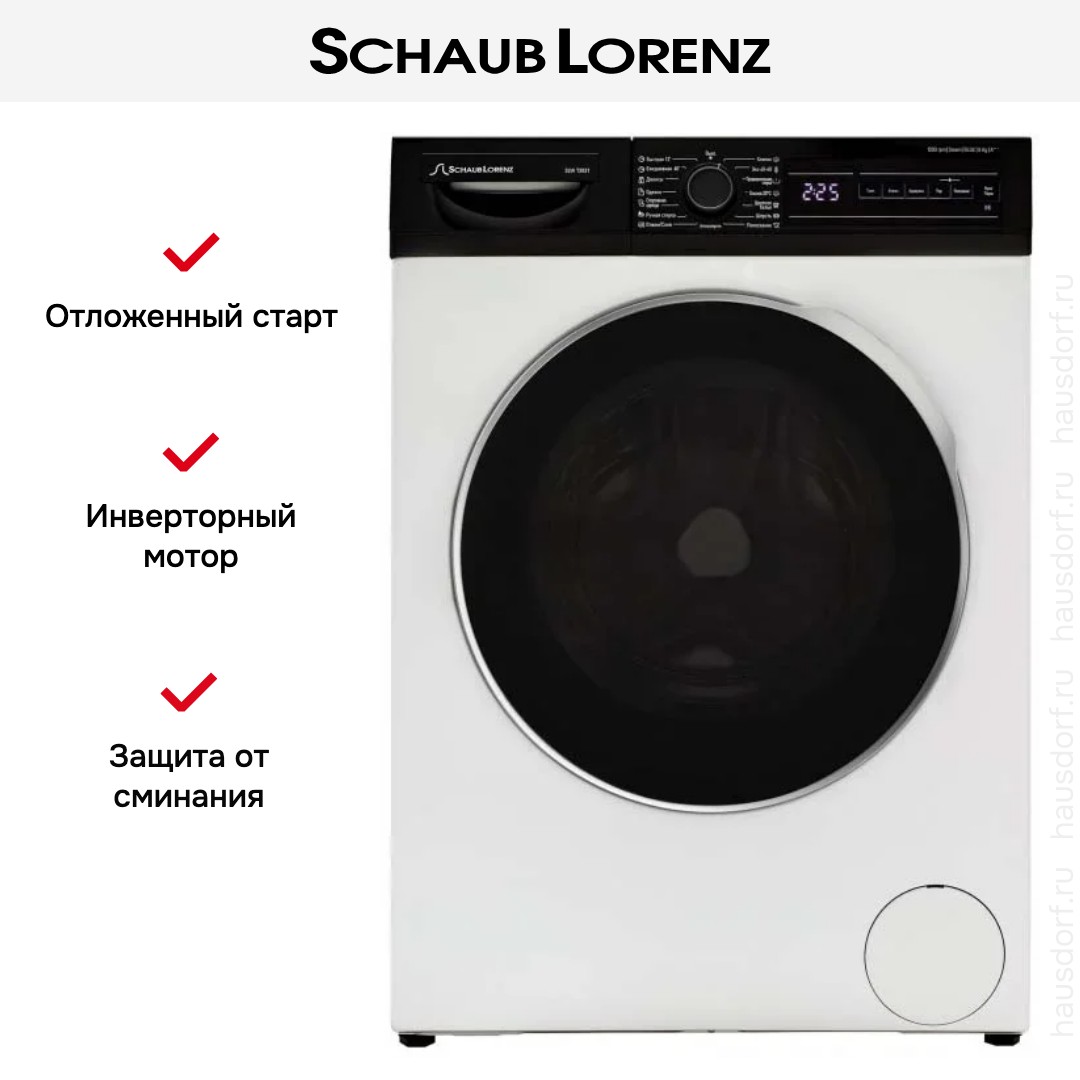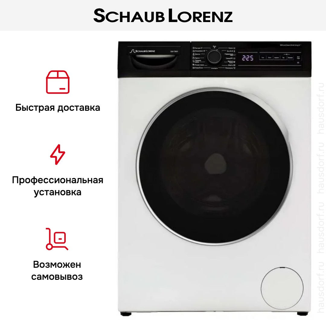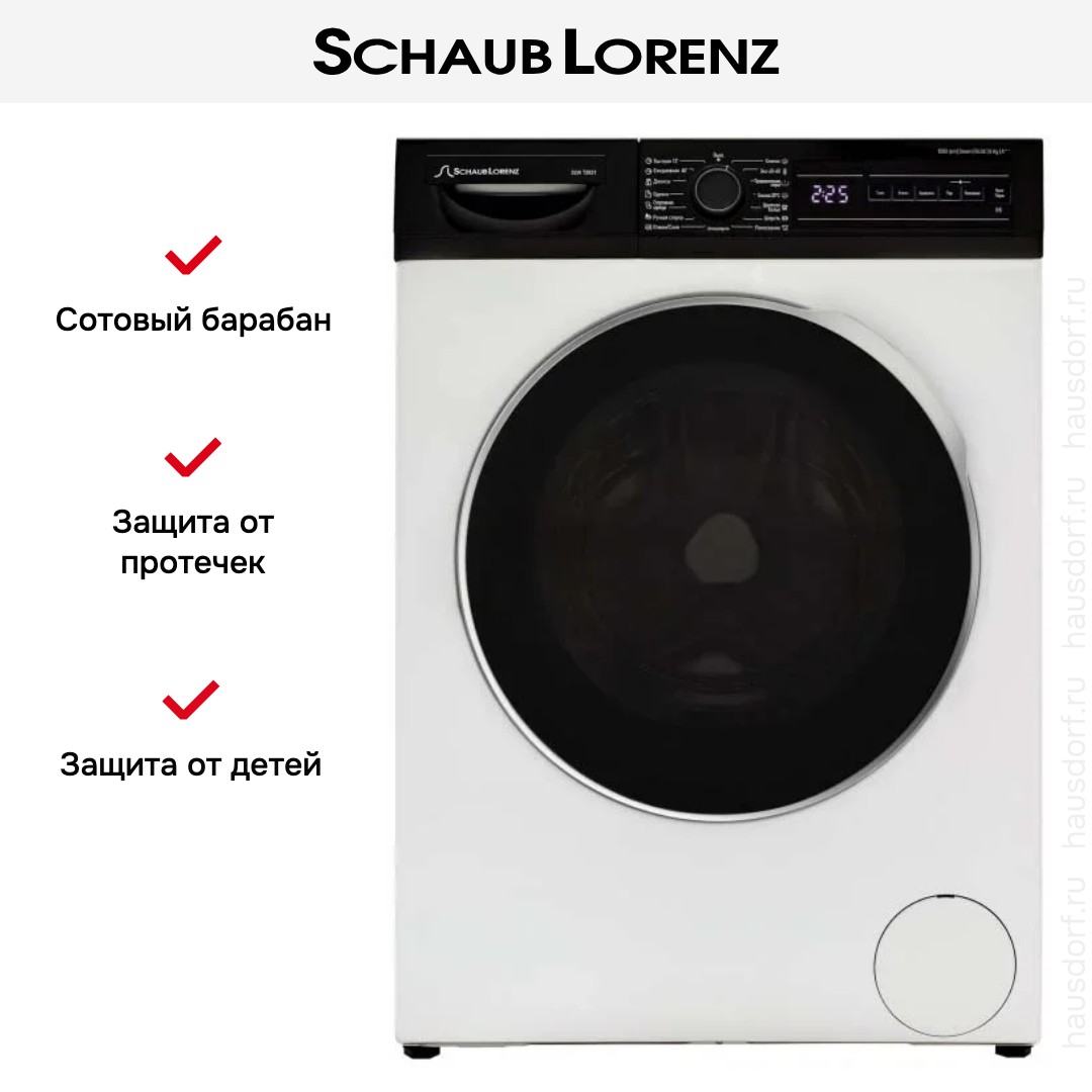 Для дома Schaub-Lorenz SLW-T2821 — компактная и продуманная стиральная машина, созданная для повседневного комфорта семьи. Белый корпус в сочетании с черным люком придает прибору сдержанную современную эстетику. Габариты 84.5×59.7×55.7 см делают устройство подходящим для установки в кухне, прачечной или нише ванной комнаты. Глубина при открытой дверце увеличивается до 102.57 см, поэтому стоит учесть свободное пространство при планировке помещения.