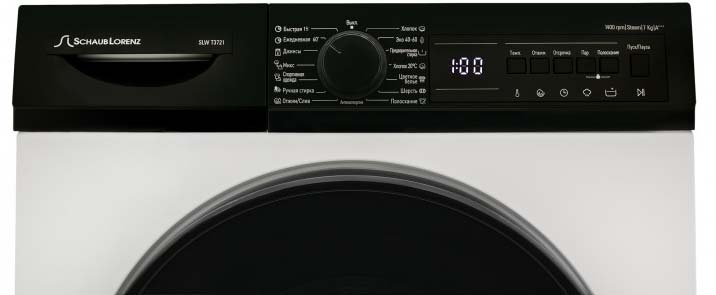 Достаточно простыми, но гораздо более информативными являются цифровые дисплеи, которые могут отображать числовую информацию и ограниченное количество символов. На таком дисплее, например, может отобразиться номер программы, скорость отжима, блокировка люка, отсрочка старта, температура воды, время, оставшееся до конца работы, символические обозначения действующих функций и прочая достаточно простая информация. Изображение может быть разного цвета — белого, зеленого или голубого, в любом оно будет хорошо заметно даже при отключенном освещении.