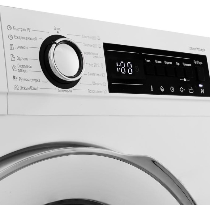 Вы загружаете белье, выбираете программу, задаете параметры и выставляете таймер для удобной работы.