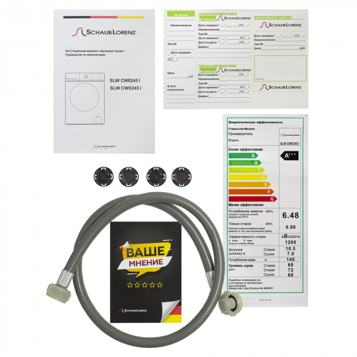 Комплектация: шланг подачи воды, сливной шланг, инструкция по эксплуатации