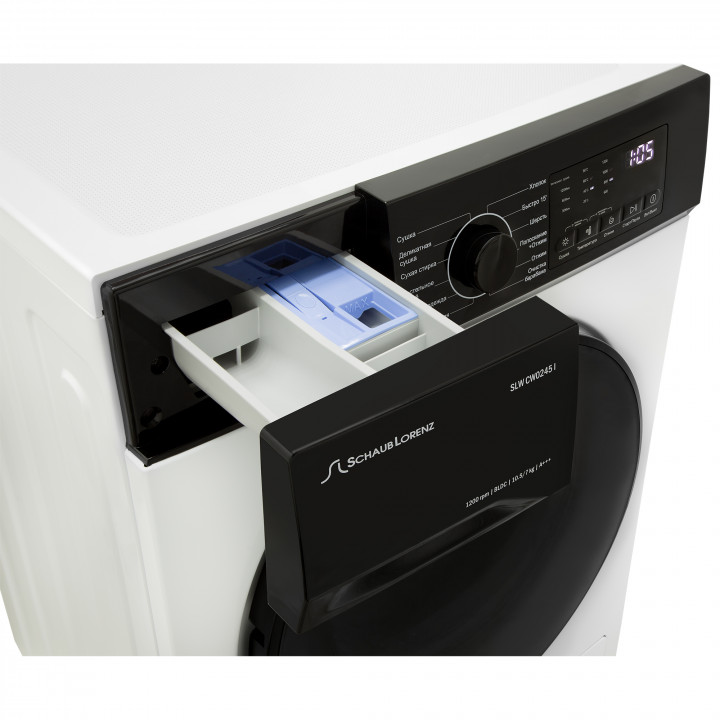 Стиральная машина Шауб Лоренц SLW CW0245 I выпущена в стандартной конфигурации — устанавливается отдельно, поэтому рекомендуем заранее выделить для нее место в квартире. Благодаря классической фронтальной загрузке она привычна и удобна даже для тех, кто не очень разбирается в технике. В барабан помещается большое количество белья, что подойдет большим семьям или тем, кто часто стирает объемные вещи — постельное белье, верхнюю одежду. Максимальная загрузка: 10.5 кг.