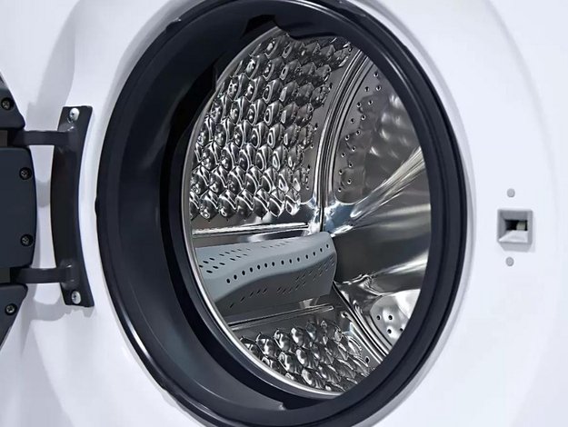 Эта модель — комбинация стирки и сушки, что полезно людям, которые не могут или не хотят приобретать отдельно сушильную машину, при этом в квартире нет балкона или лоджии, чтобы с комфортом сушить одежду на веревках. Вы можете отложить запуск, если хотите сэкономить на тарифах и включить машинку ночью, либо если планируете развесить белье сразу после возвращения работы и не ждать, пока закончится цикл. Скорость отжима достигает 1200 оборотов в минуту.