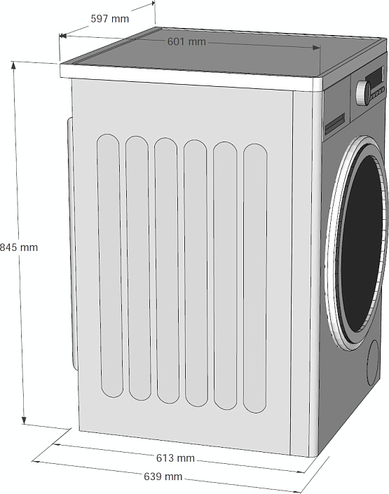 Высота сушильной машины составляет 82-85 см, благодаря чему ее можно разместить под столешницей — например, в ванной рядом с раковиной. У некоторых моделей высоту прибора можно уменьшить, сняв верхнюю крышку и заменив специальной технологической крышкой для встраивания или металлической плитой.
