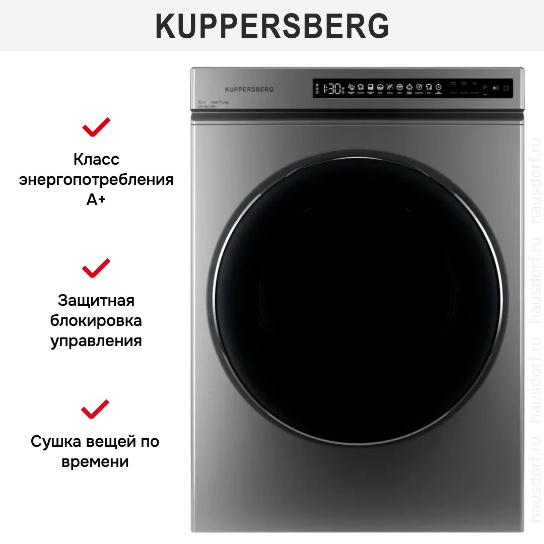 Сушильная машина Kuppersberg предназначена для домашнего использования, поэтому имеет стандартные габариты и большое разнообразие программ. Так как она устанавливается отдельно, нужно заранее найти достаточно места в помещении.