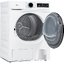 - Тепловой насос — поступающий внутрь воздух нагревается, что ускоряет и улучшает эффективность сушки. Затем он проходит через конденсационный отдел, отдает влагу и сухим повторно возвращается в барабан.