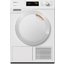 Miele TCC 374 WP — стильная полноразмерная модель с глухой дверцей, стальным барабаном и наклонной панелью управления. Максимальный вес загрузки составляет 9 кг сухого белья, этого вполне достаточно для семьи из 3-4 человек: вы сможете высушить все выстиранное белье за один цикл. В машинке используется конденсационная сушка с тепловым насосом (помпой). Горячий воздух воздействует на белье, отбирая у него влагу, затем воздух с высоким процентом влажности поступает в испаритель, где охлаждается. Влага конденсируется и сливается в канализацию или отдельный контейнер. Это циклический процесс — воздух не выходит наружу, а возвращается в барабан, нагревается и снова используется для сушки, так что подключения машины к вентиляции не требуется.