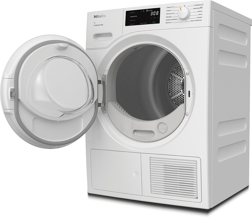Запатентованная гарантирует согласованную работу и автоматическую очистку теплообменника и фильтра, так что пользователю не нужно беспокоиться и следить за степенью засорения теплообменника ворсом, а затем извлекать и прочищать его вручную, что также занимает значительное время. Таким образом удается поддерживать короткие рабочие циклы для сушки белья из ткани любого вида, а значит, и экономить электроэнергию: срок службы машины при этом не имеет значения. Все сушильные машины Miele, оснащенные технологией EcoDry, относятся к наивысшему классу энергоэффективности А+++.