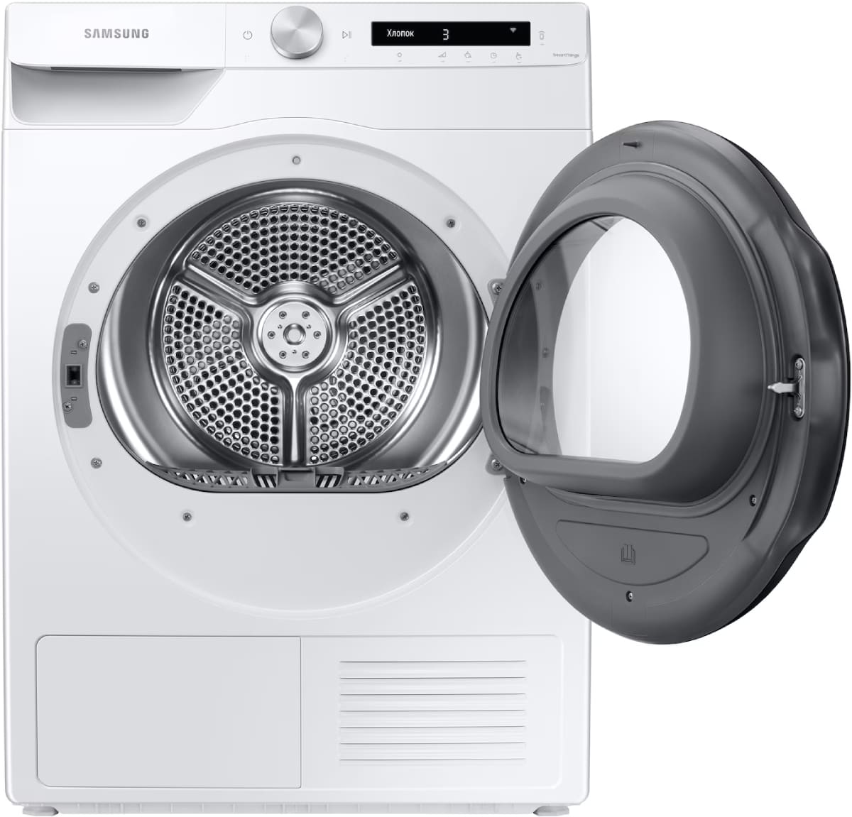 Тип сушки белья в данной модели — тепловой насос. Благодаря этому воздух поступает в барабан уже теплым, что ускоряет работу. Специальный компрессор Heat Pump помогает вам экономить электроэнергию.