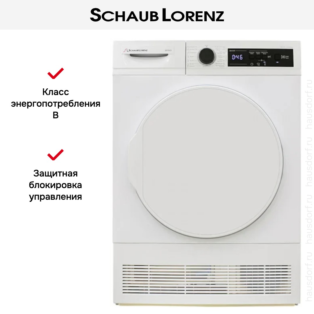 Сушильная машина Schaub Lorenz предназначена для домашнего использования, поэтому имеет стандартные габариты и большое разнообразие программ. Так как она устанавливается отдельно, нужно заранее найти достаточно места в помещении. Особенности, на которые нужно обратить внимание при размещении: возможность установки в колонну. Колонна — это название для совместной установки со стиральной машиной друг на друга, обычно для этого нужен специальный крепежный элемент.