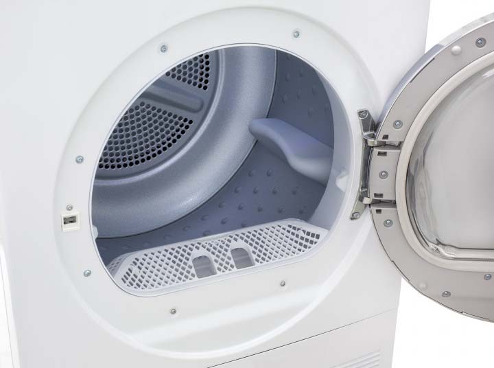 Барабан вращается попеременно в разные стороны, чтобы белье не сбивалось в ком и эффективно просушивалось со всех стороны.