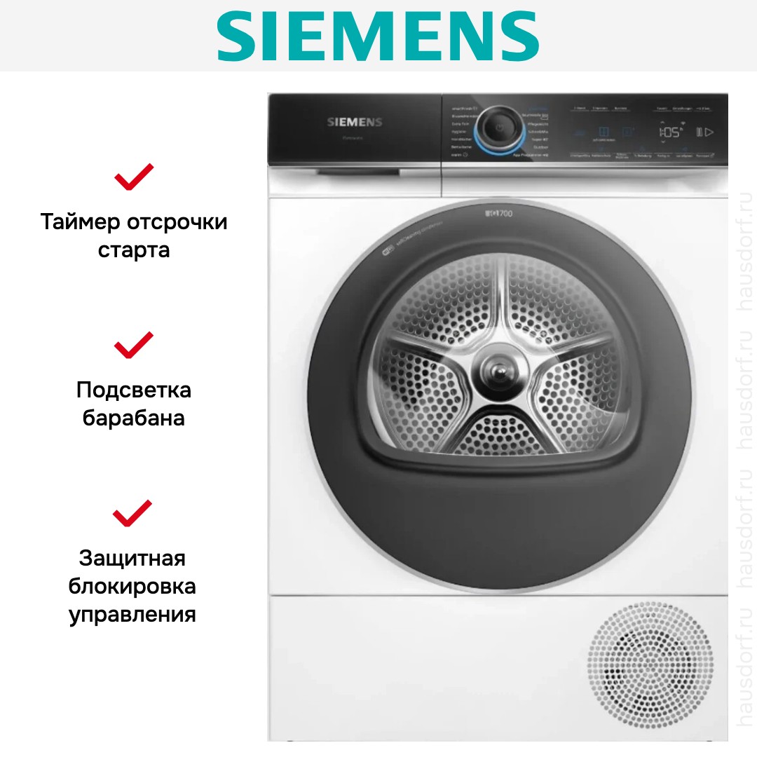 Сушильная машина Siemens предназначена для домашнего использования, поэтому имеет стандартные габариты и большое разнообразие программ. Так как она устанавливается отдельно, нужно заранее найти достаточно места в помещении.