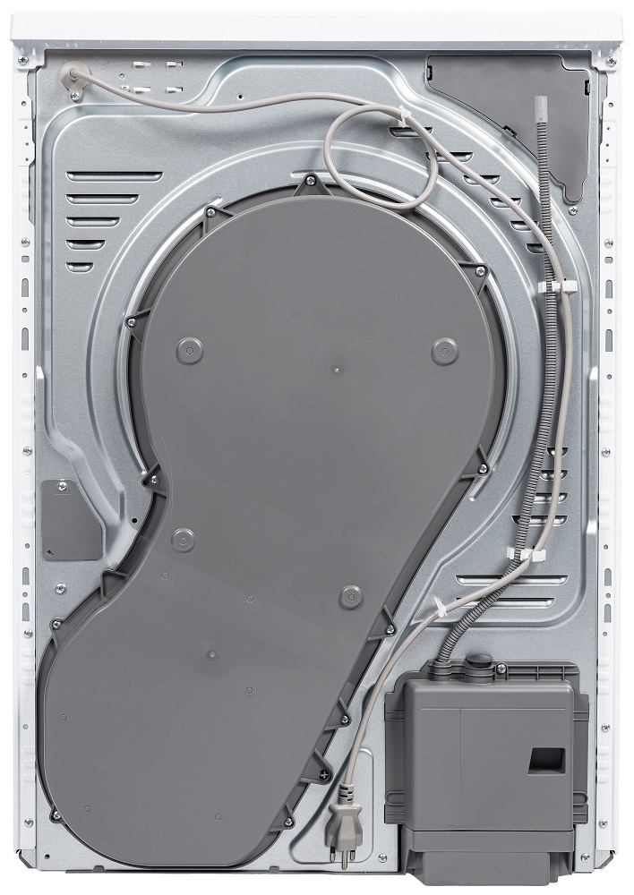 Сушильные машины конденсационного типа, как и устройства с тепловым насосом, не требуют присоединения к системе вентиляции и подключаются только к электросети. Конденсат, который удаляется из загруженного белья, стекает в специальный контейнер. Он расположен так, чтобы его извлечение было максимально удобным — например, в верхней части корпуса, там, где у стиральных машин находится лоток для порошка. Опустошать этот контейнер необходимо вручную — как правило, после завершения каждого цикла работы. О необходимости слива конденсата предупреждает специальный индикатор на панели управления.